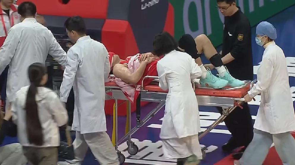 广州队VS山东队的补赛,进行到末节时郭艾伦带球快攻反击对抗后倒地,抱着左膝久久不能起身,之后被担架抬出场外治疗,该场比赛他替补出战约16分钟,投篮7中3,三分3中1得到7分1板2助2失误,正负值+3。